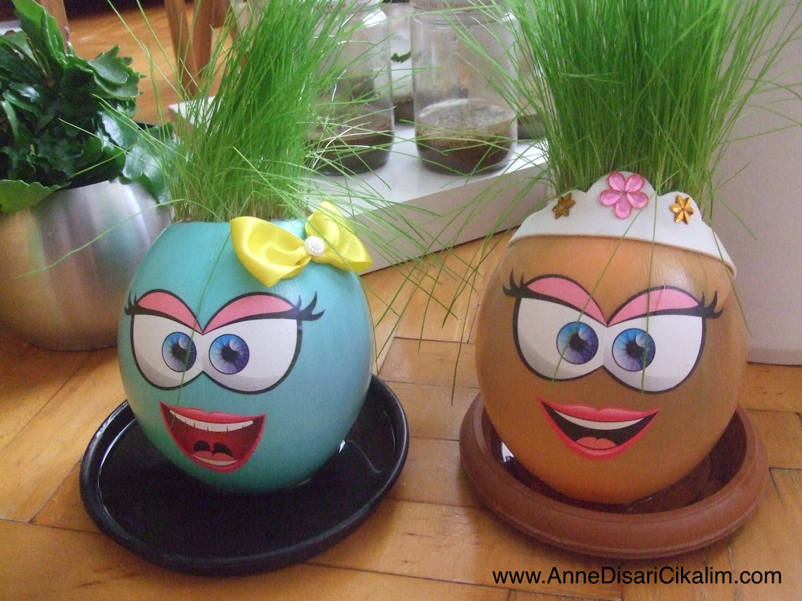 Bir bitkinin büyüdüğüne şahit olmak o kadar heyecan vericiydi ki, kızım da eve iki tane Çim Adam – aslında Çim Kız- getirdi. Kızlar kel ama çok süslüydüler. Su dolu kovalarda beklettik önce, sonra da her gün merakla suladı onları kızım…