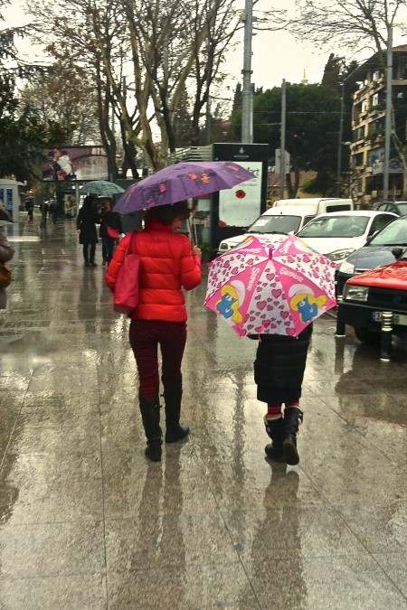 Sokaklarda, yağmur altında, elimizde renkli şemsiyelerimizle yürüyoruz… Kurabiye yemeye ya da kitapçılara uğrayarak… Sularda zıplamaya izin de var!