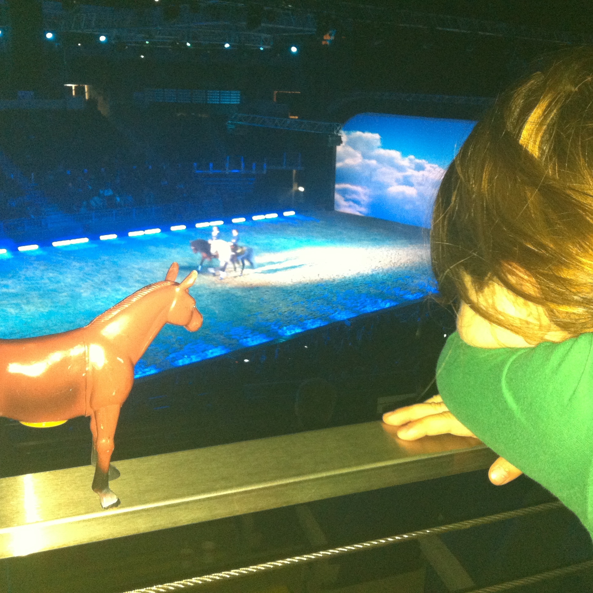 Kızım gelirken yanında oyuncak atlarını getirmişti, onlar da seyretsin diye… Sonra onları çantadan çıkartıp sahneye çevirdi. Ama kızımın dediğine göre, onun atları daha yetenekliymiş ve daha fazla numara yapıyorlarmış!..